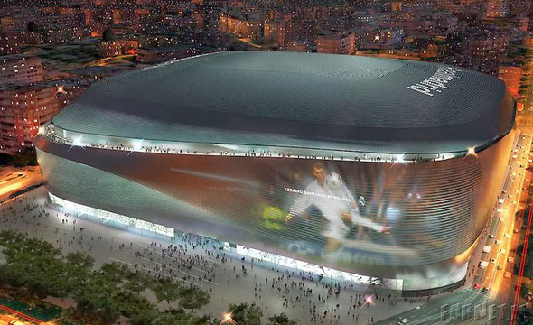 استادیوم جدید رئال مادرید قرار است به گونه ای ساخته شود که مانند یک سفینه فضایی به نظربرسد و همچنین ledهایی بر روی سطح بیرونی آن قرار داشته باشد تا صحنه های حساس را نمایش دهد.ادامه مطلب میتواند عکس های این ورزشگاه را ببینید.
